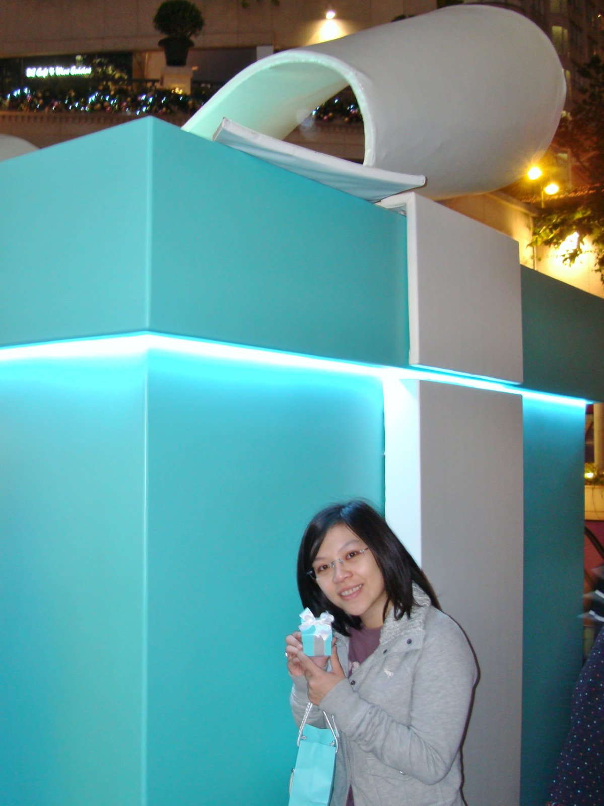 女朋友從半島酒店哭到1881 Heritage,不知道是嚇哭得還是感動哭的。沒想到廣場上滿滿全是Tiffany的佈景。有棵聖誕樹、旋轉木馬(不能坐的)、還有一個好大的Tiffany盒子,香港的聖誕節氣氛比台灣濃多了,大概是他們有放假吧…哈